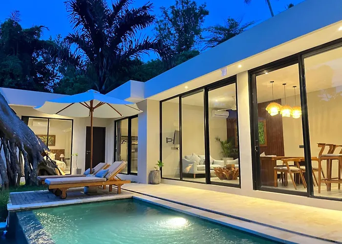 Localizada a apenas 12 minutos a pé da Árvore Giante, a 3Br Tala Villa Ubud dispõe de terraço com vistas para a piscina.